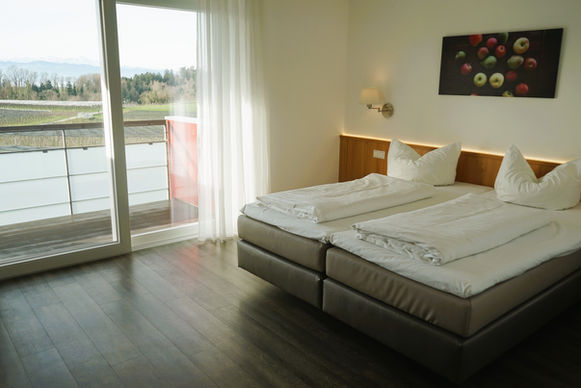 In einem unserer 6 Komfort-Doppelzimmer mit Südbalkon genießen Sie den Blick in Richtung Obstanlagen, See und Berge. Doch auch in 9 von 10 Standard-Doppelzimmern können Sie auf dem Balkon oder der Loggia entspannen. Für Familien bis 4 Personen bietet unser Haus Mehrbettzimmer mit getrennten Schlafräumen. Ergänzend verfügt der Gasthof über 2 Einzelzimmer (9-10qm) und ein großzügiges Mehrbettzimmer im Dachgechoss mit zwei Balkonen und Kitchnette.
